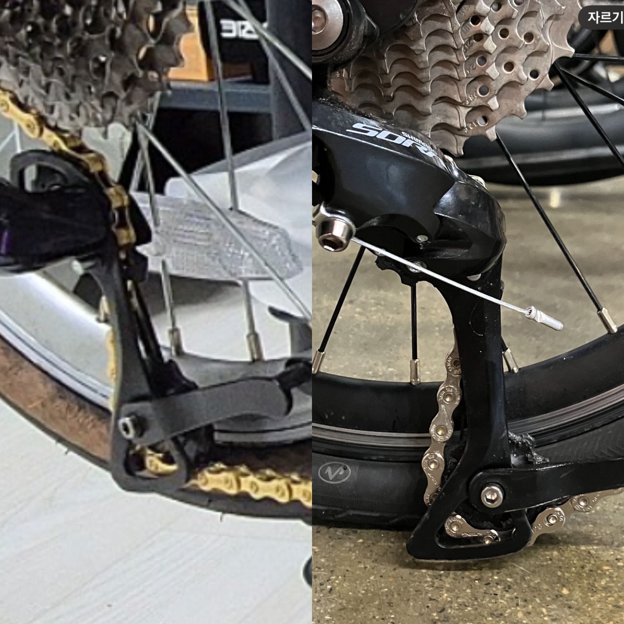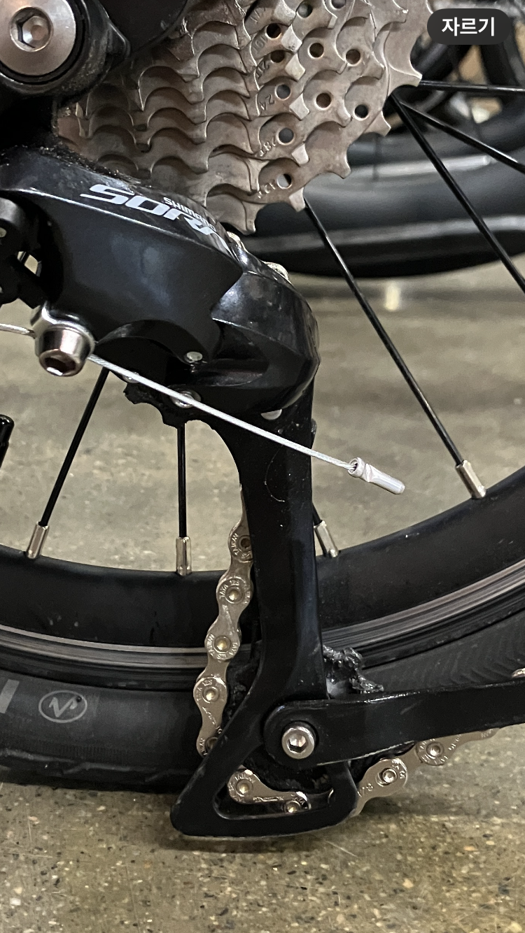 이 사진 처럼 32t에서 드레일러 케이지가 땅에 닿아버리는 현상 발생… 샵 사장님은 이거 드레일러가 롱케이지같다고 하여 드레일러를 바꿔야하나 봤는데,