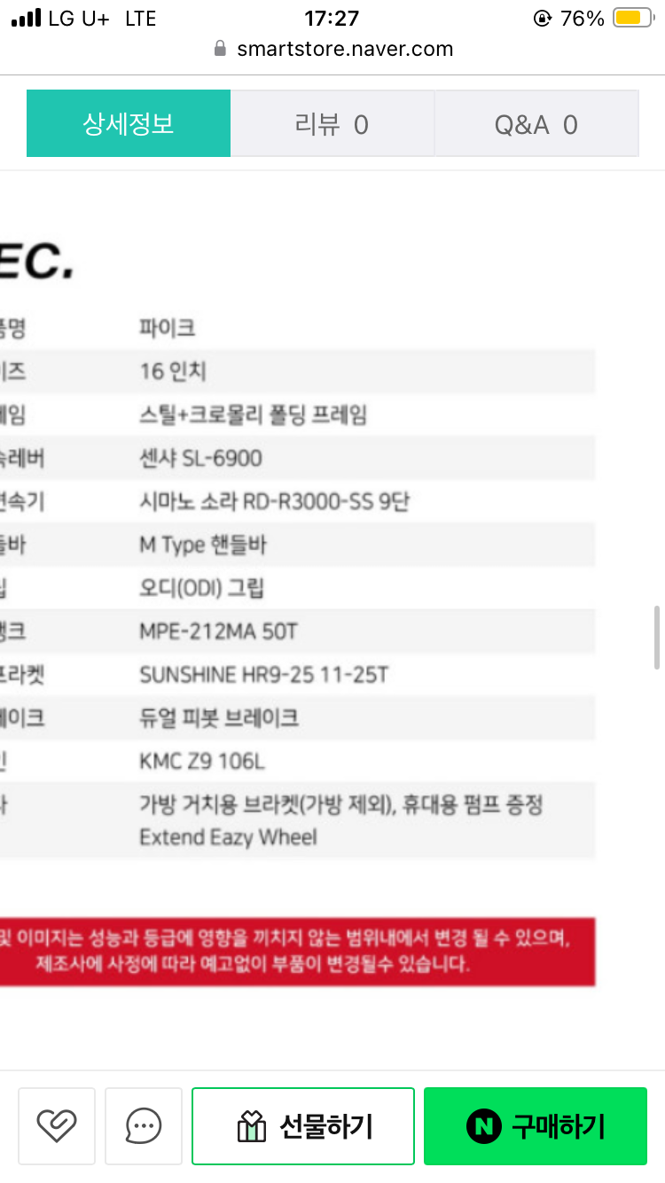아 그리고 처음 샀을 때 부터 변속 트러블이 너무 심해서 소라급이라 이런가? 생각을 하다가 춘천 바이크월드 석사점에 들려봤는데, 세팅이 제대로 되어있지 않다고 하여 조정 만으로 변속트러블 싹 사라짐… 이제서야 매우 만족하고 타고다니는 중 ㅎㅎ